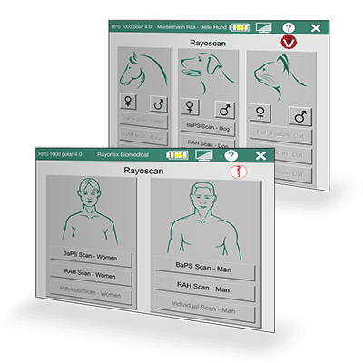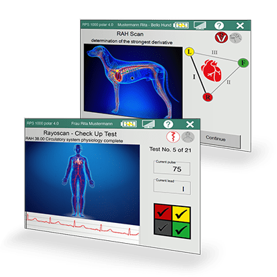 The high-end software modules Rayoscan® Human and Rayoscan® VET for the Rayocomp PS 1000 polar 4.0 enable tests based on ECG analysis, which provide a comprehensive, cause-orientated therapy proposal as a result.