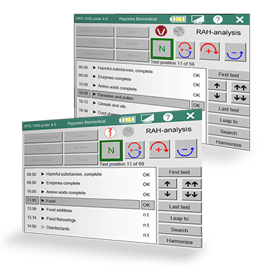 The software modules RAH Global Test Human with 698 RAH programs and RAH Global Test VET with 97 RAH programs offer extensive energetic testing options to determine energetic burdens in the organism.
