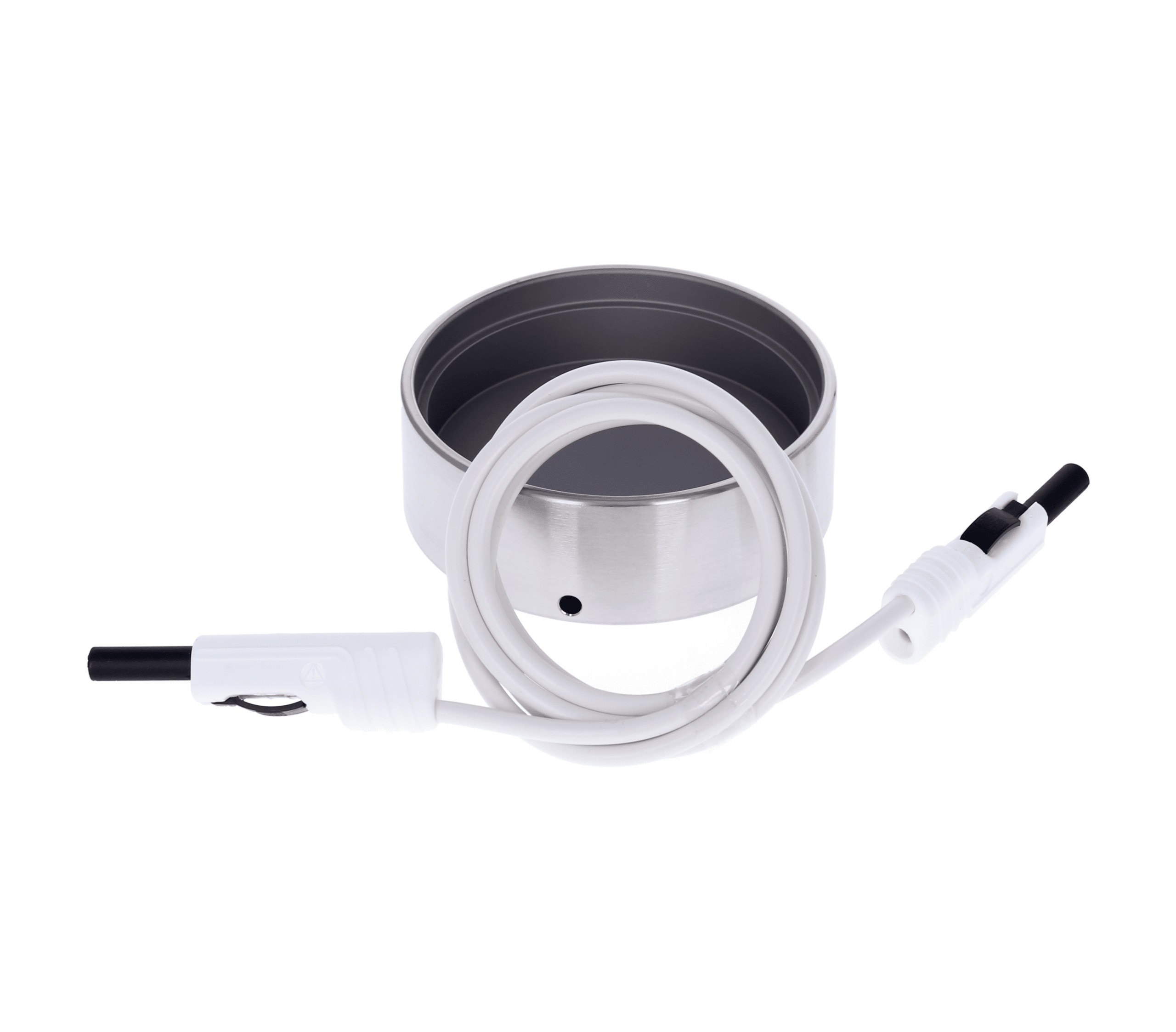 The Measuring Cup has been a standard accessory for the application of Bioresonance according to Paul Schmidt for many years and is mainly used to energise frequencyThe frequency describes the number of oscillations per second and is given in the unit Hertz (Hz). An oscillation passes through various points: The starting point, the maximum point, the... More carriers.It serves as a receptacle for microscope slides and smaller glass vessels when applying oscillations to the client’s urine or blood. To energise Rayo®-Tabs, simply place them in the Measuring Cup and transmit the desired frequencies or frequencyThe frequency describes the number of oscillations per second and is given in the unit Hertz (Hz). An oscillation passes through various points: The starting point, the maximum point, the... More spectra using the bioresonance device.Delivery includes a 1.0 m connection cable.