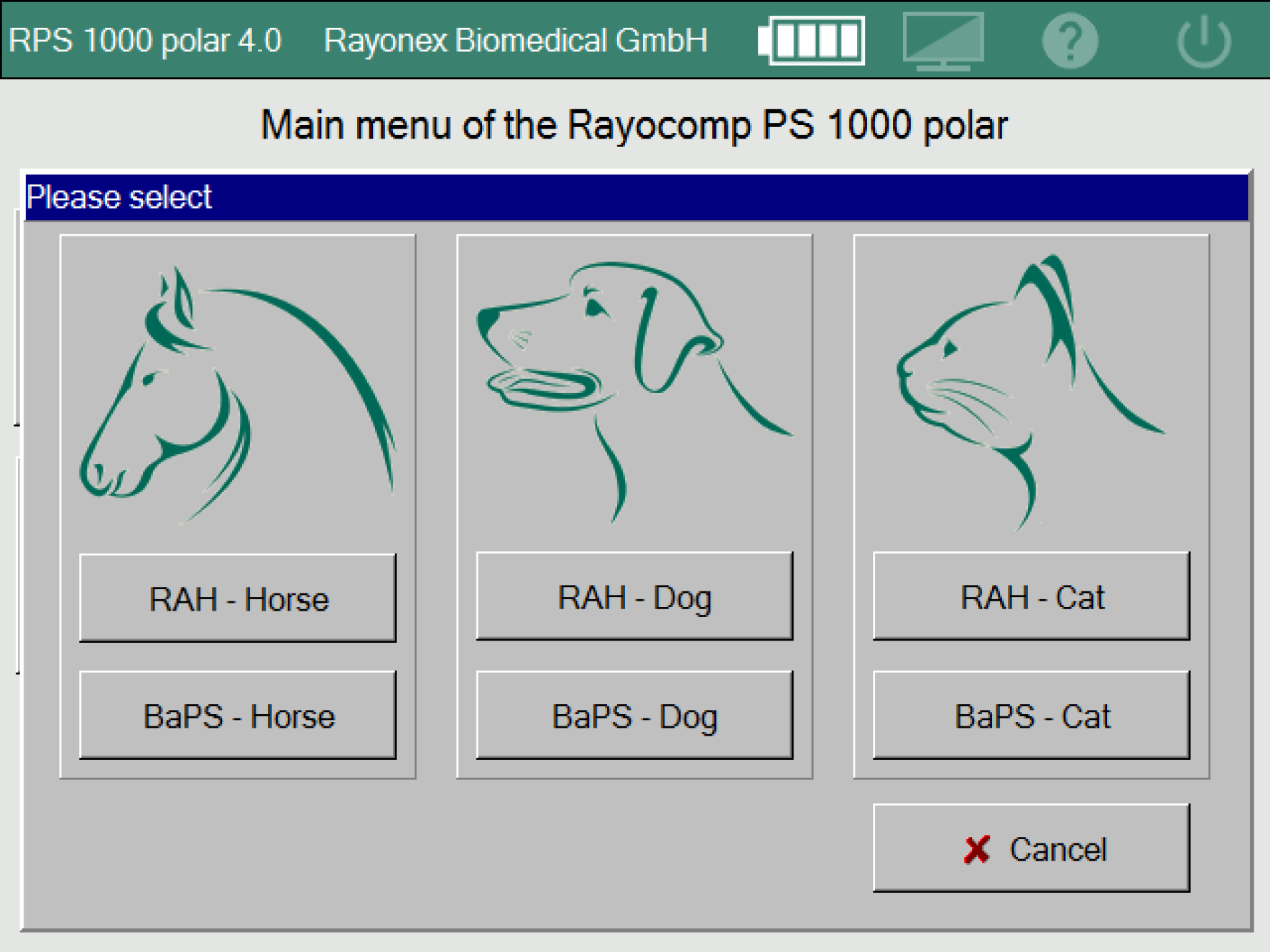 Software module with over 1,600 RAH VET programs for Rayocomp PS 1000 polar 4.0