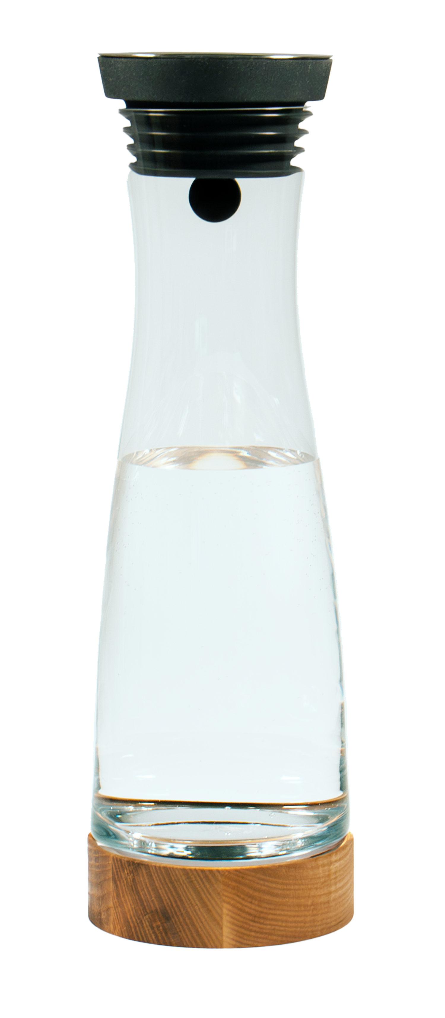 Transfer and store the frequencies of Bioresonance according to Paul Schmidt in water: As part of a cell biological investigation, it was possible to prove that this is exactly how it works and that water can be energised. What’s more, it was demonstrated that water can store the frequencies emitted by a Mini-Rayonex when the water is brought into close proximity to the Mini-Rayonex. The energised water can in turn release the stored frequencies to the cells and thus stimulate them. The cell biological investigation has also shown that the energised water leads to significant improvements in cell regeneration. (Please note that cell biological investigations cannot be transferred 1:1 to the human body.) How can you easily and conveniently energise your water?The Rayo®-Aqua basic made of solid ash wood has a built-in dipole antenna systemThe dipole antenna system of Bioresonance according to Paul Schmidt consists of a fixed and a moving rod layer. Depending on the angle that is chosen between the two rod... More for energising water. In addition to the Rayo®-Aqua basic, you will receive the matching glass carafe with a capacity of 1.0 litre. The glass carafe is extremely convenient to fill and easy to clean. The glass carafe has a close-up seal with a sophisticated tilting mechanism that opens automatically when pouring and closes when set down.