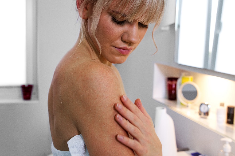 We recommend four regular baths a month or a foot bath, a wrap or alkaline stockings every two to three days. A bathing temperature of around 38°C – 39°C and a bathing time of at least 45 minutes is perfect. Rub your skin every 5 to 10 minutes with a massage sponge or massage brush. Ideally, let the skin dry itself, do not apply cream and rest for an hour after the bath. Please do not use any other bath additives in combination with Rayosole® plus.